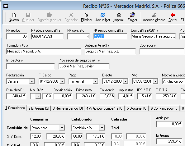 Archivar alta o modificación de Recibo (Extorno o Suplemento). Corregido.